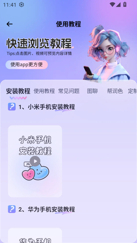这里还增添了一些可爱卡通的表情包资源,随时都能下载到自己的手机当中,并能直接发送给对方缓解尴尬;