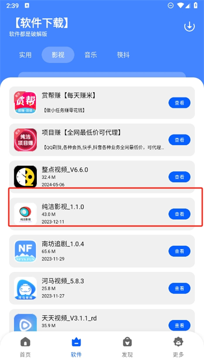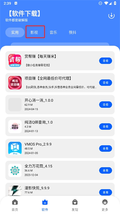 2、接着我们就可以看到各种详细的软件分类,我们以影视软件资源下载为主进行查看;