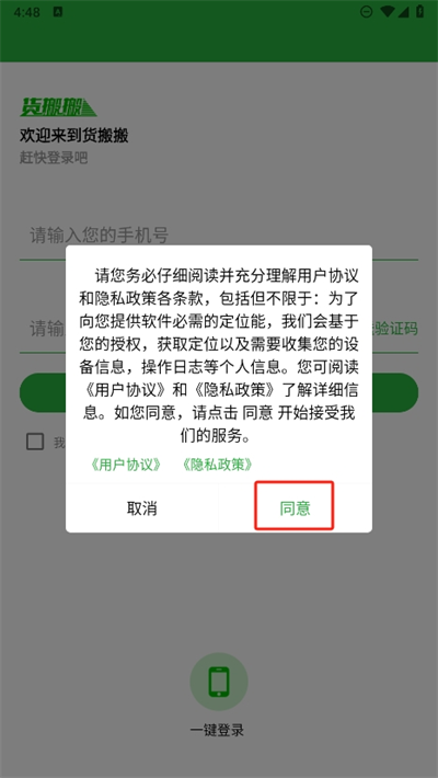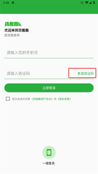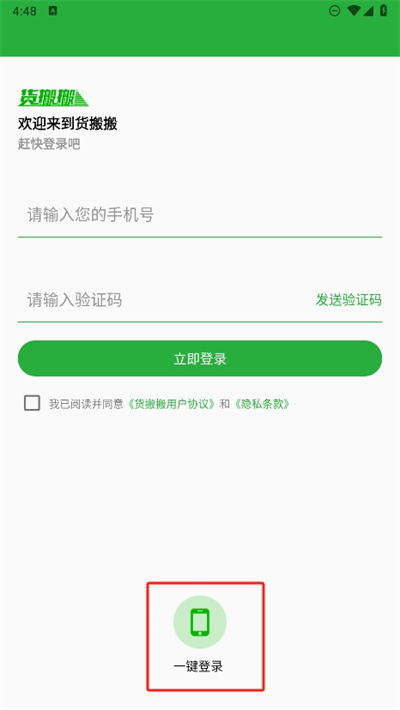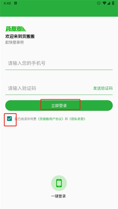 4、在登录之前需要勾选这个已阅读并同意《货搬搬用户协议》和《隐私条款》,在点击立即登录就能成功登录。
