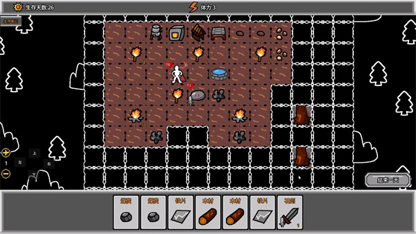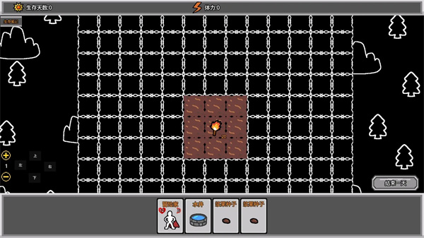 2、随机出现的各种生存物资卡牌之间进行选择抉择,不同格子之间安防上木材、火源、锅炉、水源等等卡牌物资,将每一个格子都开发出来;
