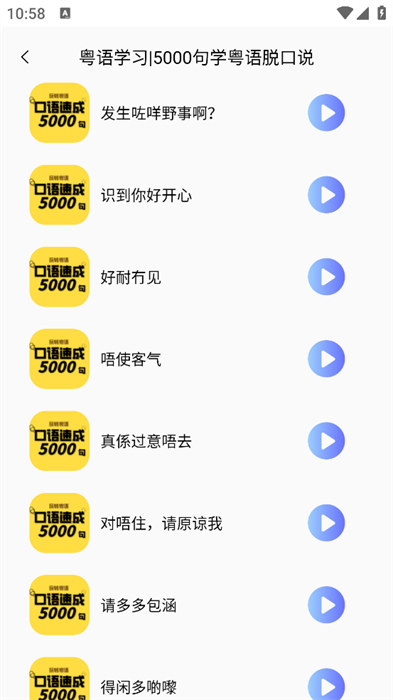 2、可以学习到五千句粤语常用的一些句子;