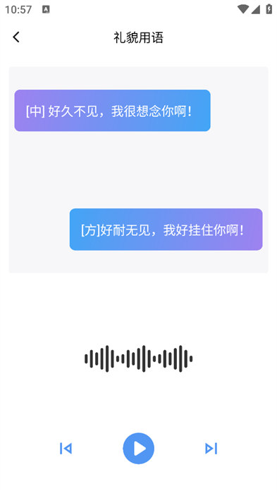 1、进入到软件之后可以点击礼貌用语去进行学习,学习好之后可以切换下一个;