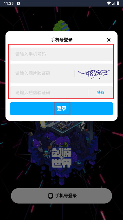 2、在空白处进行手机号以及验证码等信息的填写,填写完毕之后点击【登录】按钮,以进入快速开启游戏的界面;