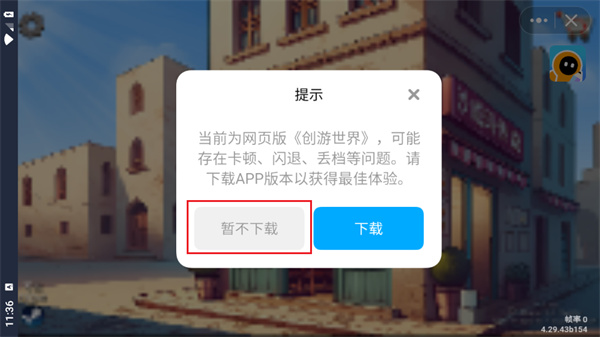 4、无需进行创游世界应用的下载,直接点击【暂不下载】按钮,即可进入游戏;