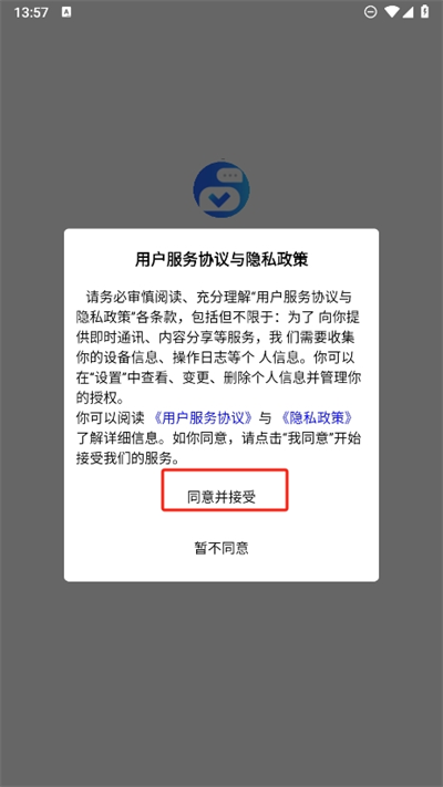 1、进入软件后需要先统一用户的服务协议和隐私政策,同意接受服务员后方可进入;