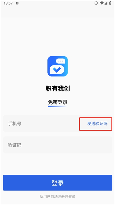 2、然后我们就可以看到该软件的登录界面,通过输入注册的手机号并发送验证码并输入登录;