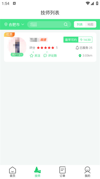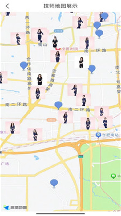 可以在地图上面看到技师的具体位置,直接就能看到距离自己最近的技师去进行服务预约的操作;