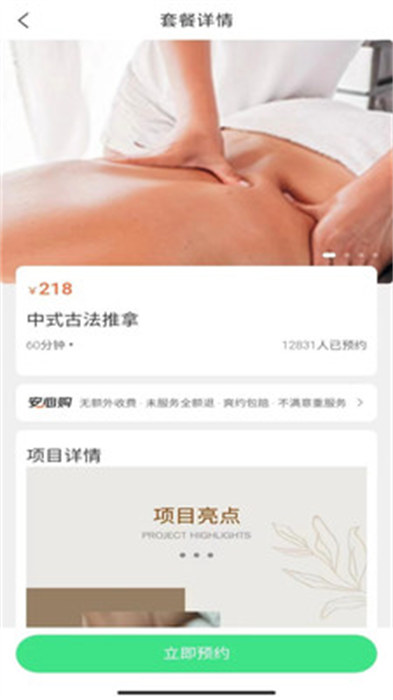 各种各样的按摩套餐为用户们进行推荐的操作,可以去选择适合自己的套餐进行预约。