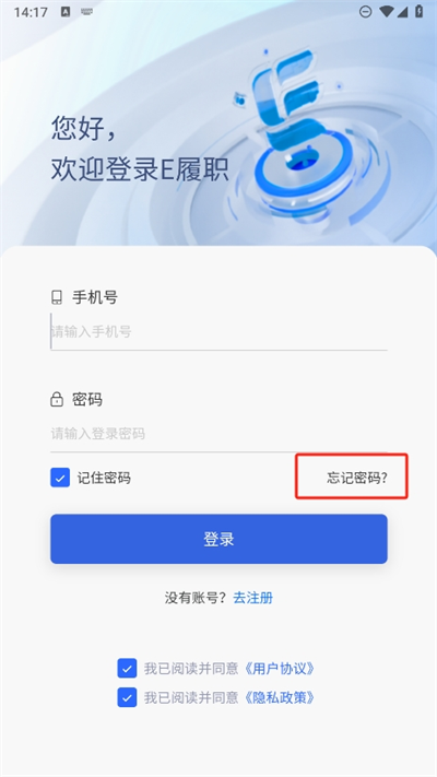 1、进入软件后可以看到在登录这里有忘记密码功能,在这里进行密码的重置;