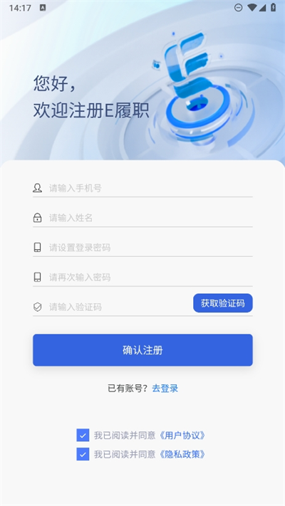 4、输入自己常用的手机号后输入真实姓名并设置登录密码,在获取手机验证码输入后就注册成功了。