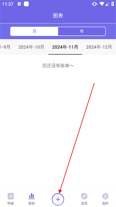 2、接着,大家进入到首页点击中间的加号按钮,就能直接跳转到记账的页面;