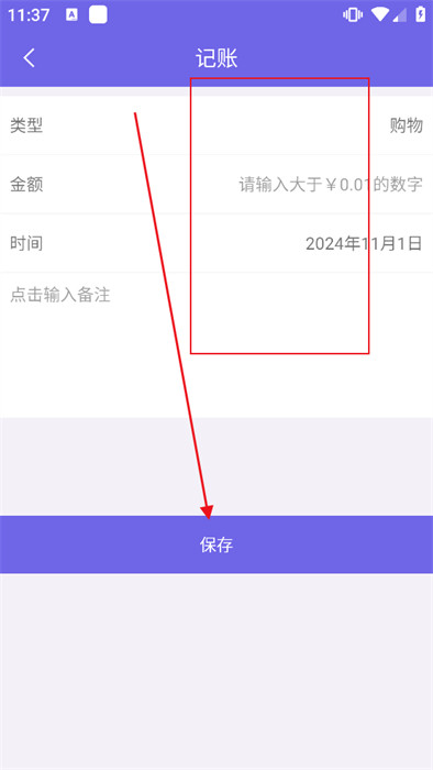 4、最后,将具体的数据和付款的软件都记录,并保存下来,紧接着在首页即可看到图表分析。
