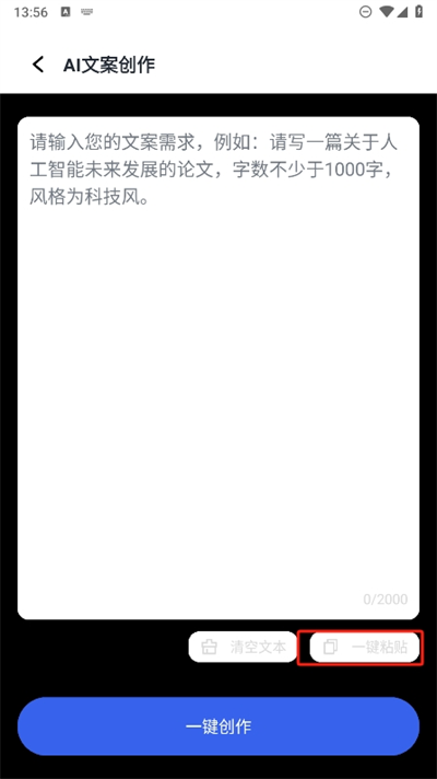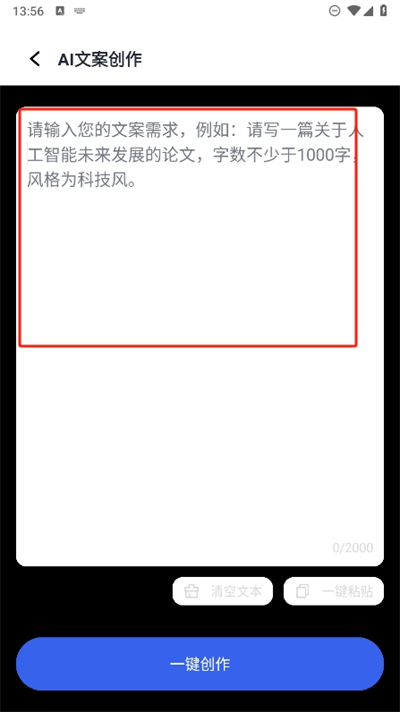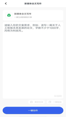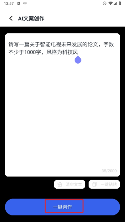 4、将自己想要创作的文章内容放入进文本内容中,在点击一键创作即可快速的生成相应的文章。