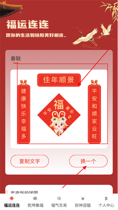 1、在首页上大家能看到传统春节的春联,可随意更换春联上的字体;