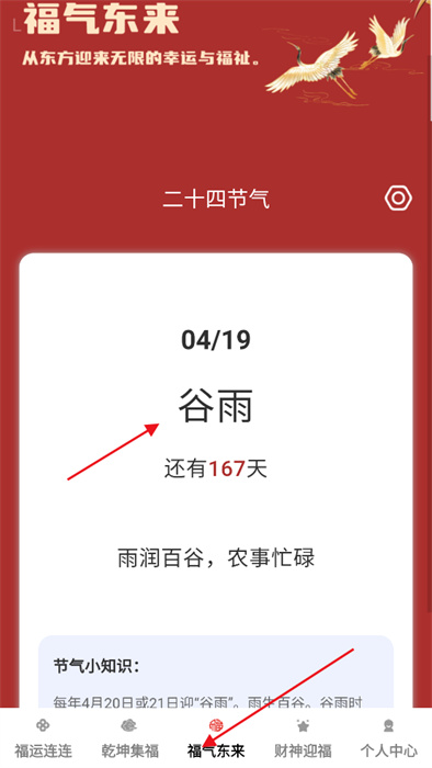 4、最后,再次切换页面,这里展示了日历上的二十四节气,每个节气都有他的含义,可精准判断季节的变化。