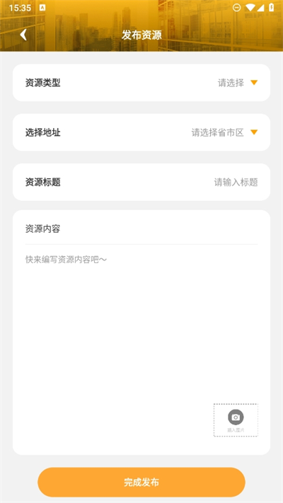 4、根据自己的发布资源类型进行选择,并选择招工的地址和资源标题、资源内容信息等点击发布即可。