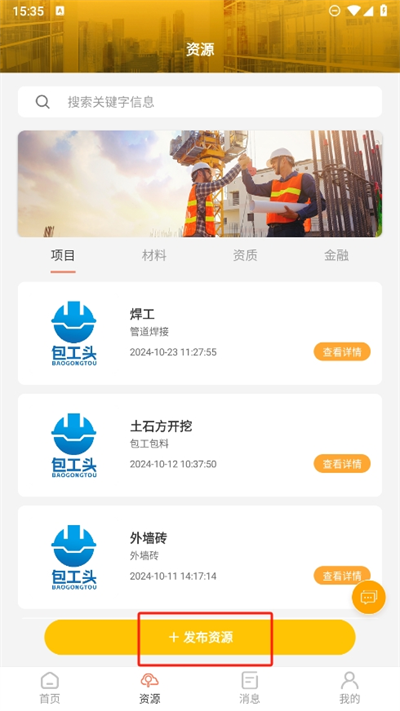 3、接着我们可以在这里看到有多个招工的资源信息,我们直接在下方点击发布资源;