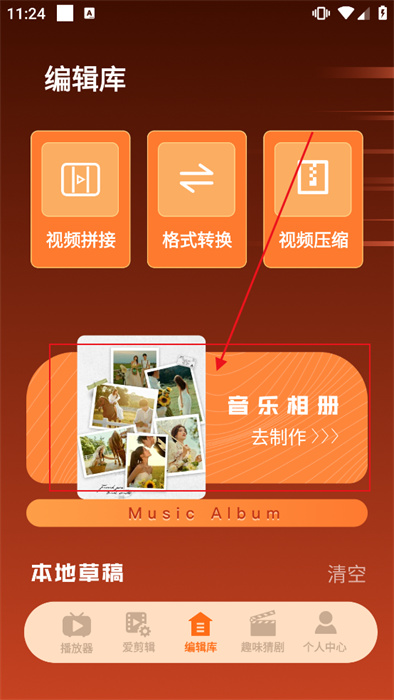 2、随后,点击页面中间的【音乐相册】会再次跳转画面,创建属于自己的音乐相册;