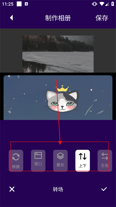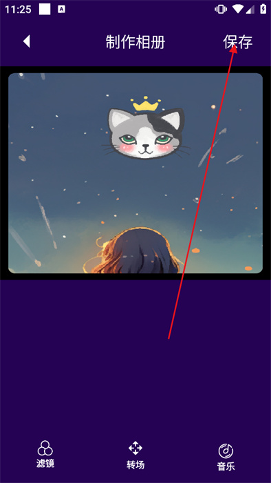 5、最后,在音乐相册创作完成之后,可以点击右上角【保存】来存储到设备的相册内。