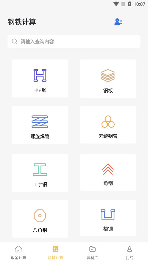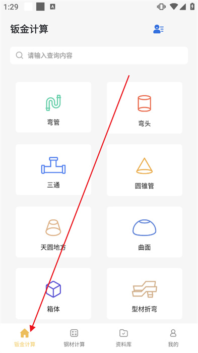1、将软件打开进入到首页上,这里能快速的计算出钣金的各种尺寸,整个页面分类的非常详细;