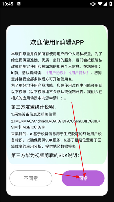1、直接将已经下载完成的软件点击进入其中,并点击【同意】,如下图;