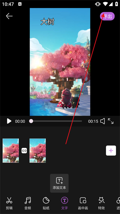 5、最后,编辑完成之后点击右上角【导出】即可看到完整视频,十分的简单。