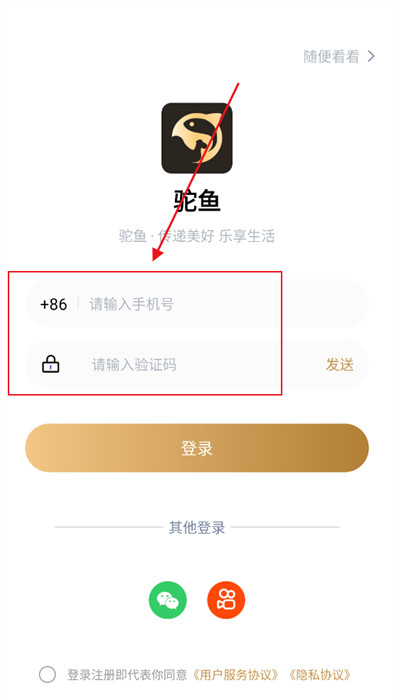 2、随后,这里需要大家登录自己的账号,如果不想注册账号,可点击右上角【随便看看】;