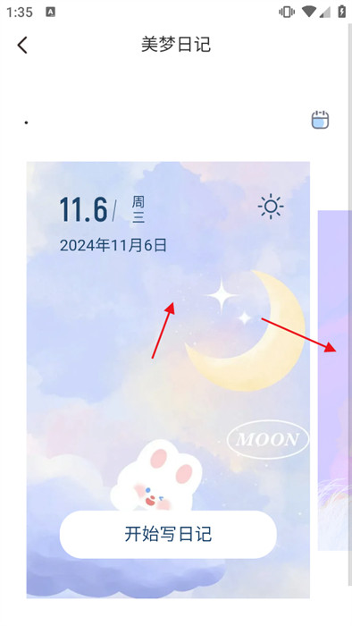 2、随后,可以看到这里记录的具体日期,还能通过左右滑动来修改日记的背景;