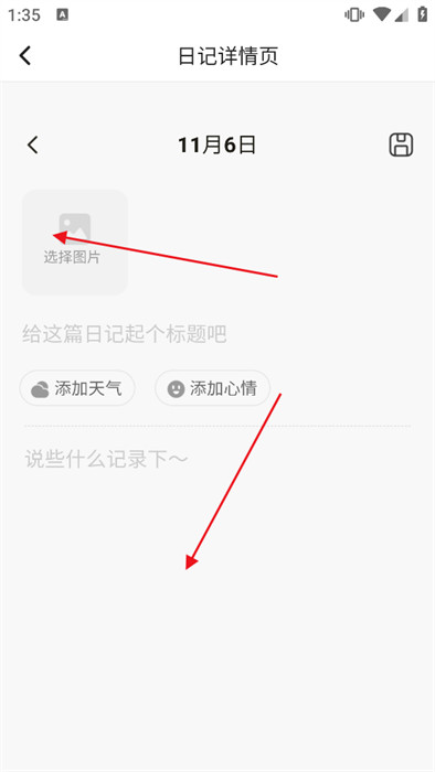 3、接着,进入到记录详情页,可按照自己的真实想法来记录,并点击右上角的按钮来保存;