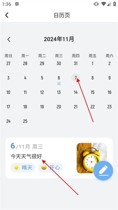 4、返回到日历页面,可以明显的看到自己当天记录的信息,随时都能进行编辑或者删除。