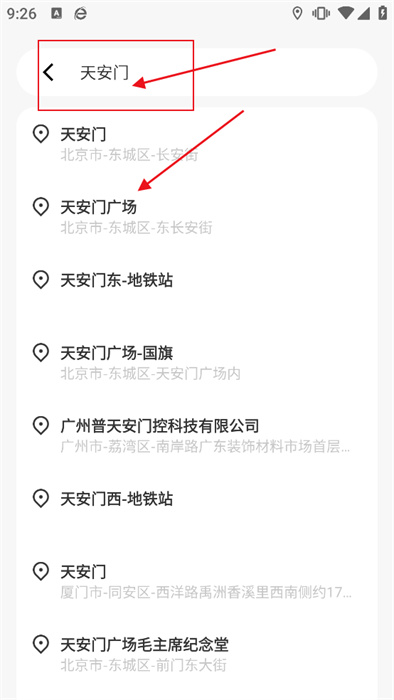 3、接着,输入了关键词之后会跳转更详细的一些词汇,点击即可进入地图页面;