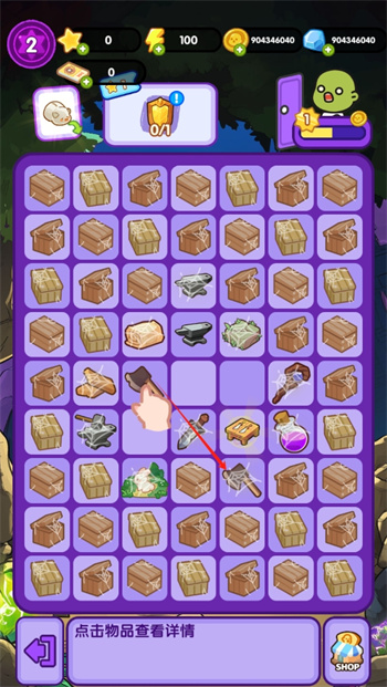 成功完成一个合成的时候,周围所有格子里面的箱子都会被解锁出来,清空更多的格子;