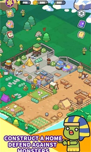 僵尸庇护所合并与建造是一个满是僵尸末日建设生存的游戏,其不同的是所有元素都以呆萌可爱的卡通设计出来,僵尸呆呆萌萌的极为可爱,完全没有害怕的感觉,主要注重策略建设与经营方面的玩法,在一片绿野之上为自己建设一个可以抵御住僵尸的家园,利用厚重的铁网栏杆围住一片祥和没有威胁的区域,将所有的家园都隔绝在外,召集一众的幸存者,结合彼此的力量壮大家园。
