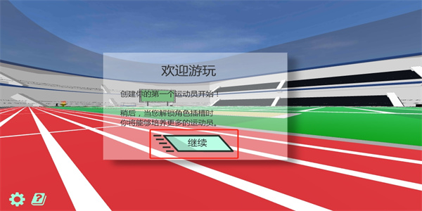 1、体育竞技比赛之前为自己创建一个运动员,与自己亲手创建出来的运动员共赴这个激烈的赛道之上,点击【继续】前往激烈赛道之中;