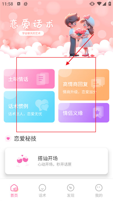 1、将软件打开到首页中,可以在最上方看到很多已经分类的话术,如下图;