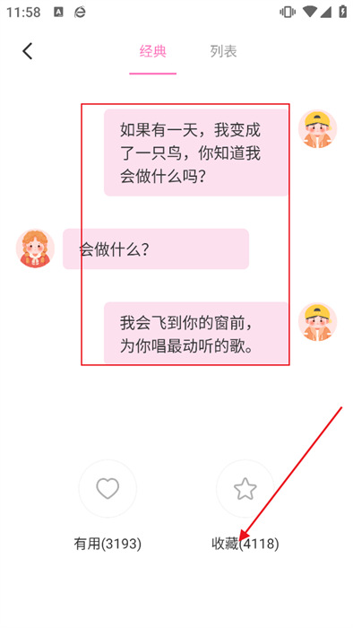2、随后,点击一个合集进入,即可了解到不同的土味情话,如果喜欢可以直接点击下方【收藏】按钮;