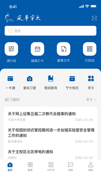 风华宁大app是宁波大学专为师生们打造的移动网上办事的校园生活服务软件,在该软件的使用上专为师生们的日常生活提供了超多实用化的服务功能,方便大家在日常的生活中能够轻松的查看到校园内的最新活动和动态信息等,并且还能够实现校园费用的缴纳、校园新闻和校园咨询等,为各位带来一个能够轻松的实现校园生活的服务平台,让各位在平时也能获得更加便捷化的校园服务支持。