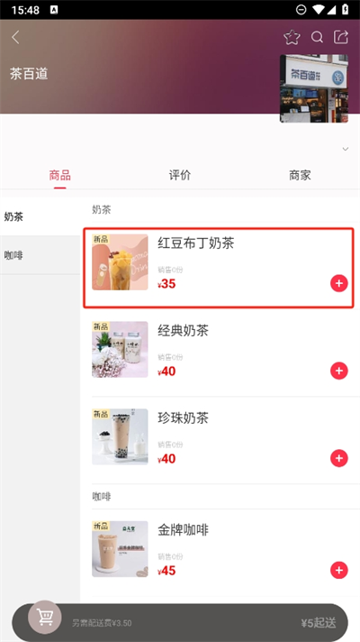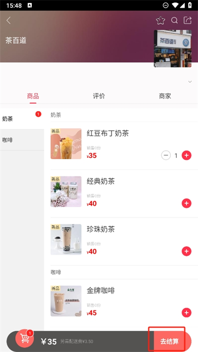 1、如果想要及时的购买到商品,通过这里下单快速配送到当前为止,比如我们以奶茶为例;