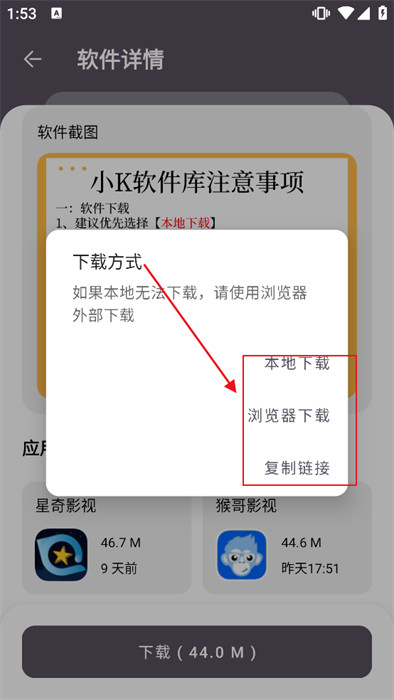 4、最后,可以选择目前的下载模式,最推荐的是【本地下载】,如果下载不了,再选择【浏览器下载】。