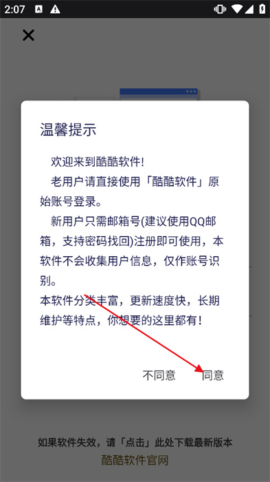 2、随后,这里会跳出一些软件的介绍以及隐私权限的弹窗,点击【同意】,如下图所示;