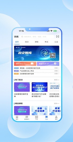 政企智库APP将会带来专业的在线进行教学培训和办公服务软件,在面对如今的培训和考试功能上提供专业模拟考试,并且在面对如今的行业发展下,更是在知识教学培训上提供了多个行业的知识教学,为了能够帮组你们更加轻松的找寻资料,按照行业的分类进行资料的查找,快速的获取相关的知识内容,同时还有详细的数据分析功能,为大家在平时的学习或者办公上提供了更加便捷、专业的使用。
