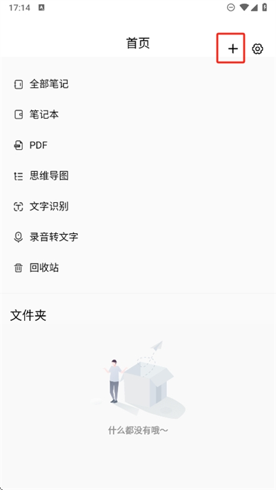1、在页面的右上方可以看到一个+号,点击这里就可以进行笔记的新建了;