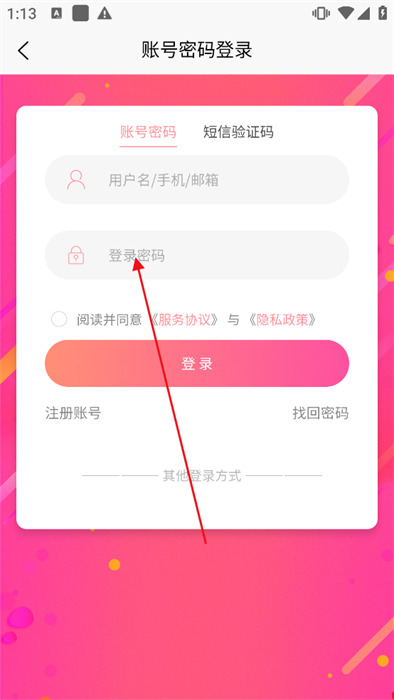 2、随后,可以跳转到登录页面,有账号的用户能够直接使用账号密码来登录;