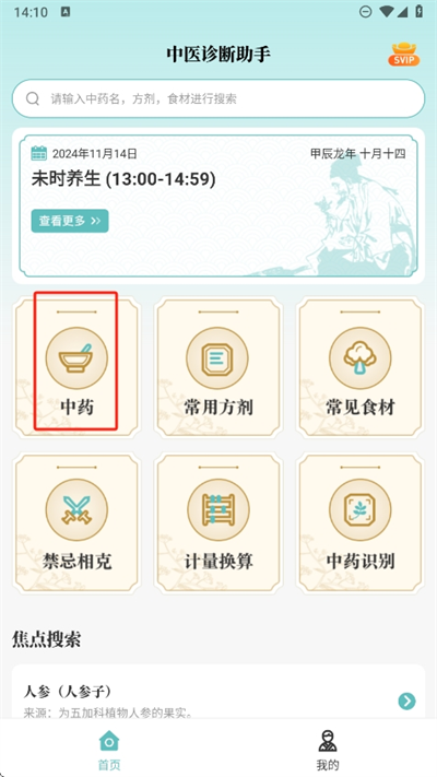1、进入软件后可以看到有很多中医相关的功能,比如可以在这里查看到中药药材介绍等;
