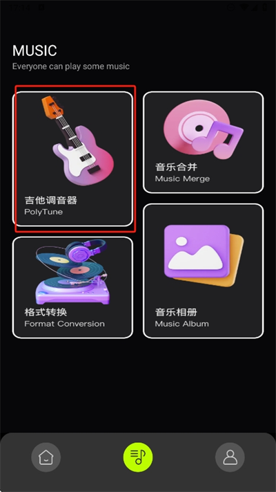 3、进入后可以看到这个吉他调音功能,点击进入就可以进行精准的调音功能啦;