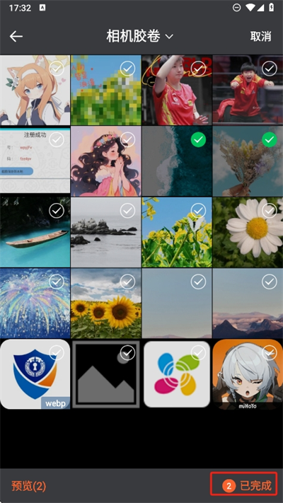 3、选择好图片后可以通过预览进行查看选择的图片,还可以继续添加或者取消添加;