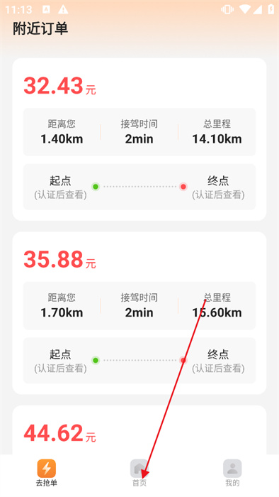 2、紧接着,进入到平台可以直接接单并跳转平台,切换到【首页】,如下图所示;