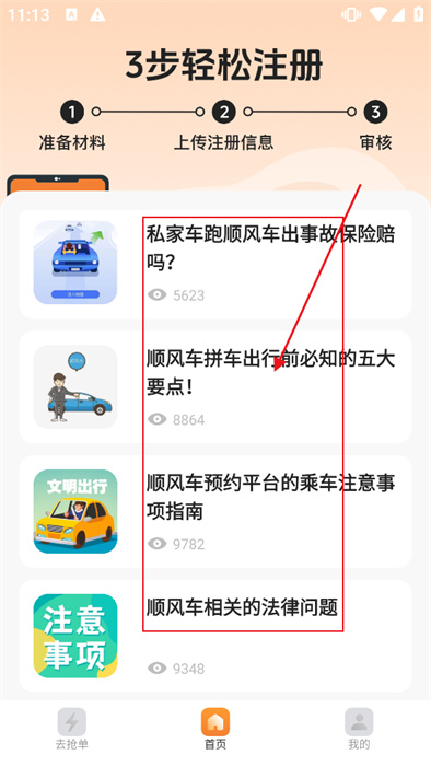 3、在最上方能够看到这里注册司机的一些步骤,非常直观,大家能顺利在这里浏览并操作;