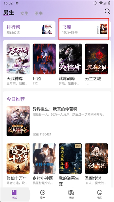 1、登录软件后我们可以在这里看到有超多的小说选择,在书库中更是可以看到不同的分类下载;
