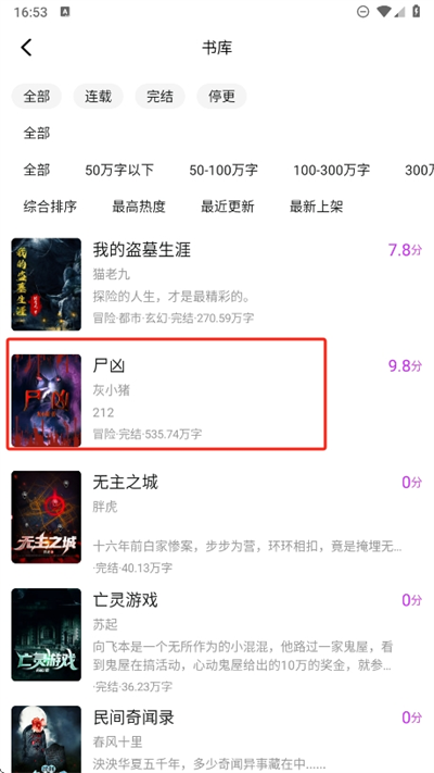 3、在悬疑栏目的书库中可以看到多种小说选择,找到自己想要看到的小说资源直接点击即可;
